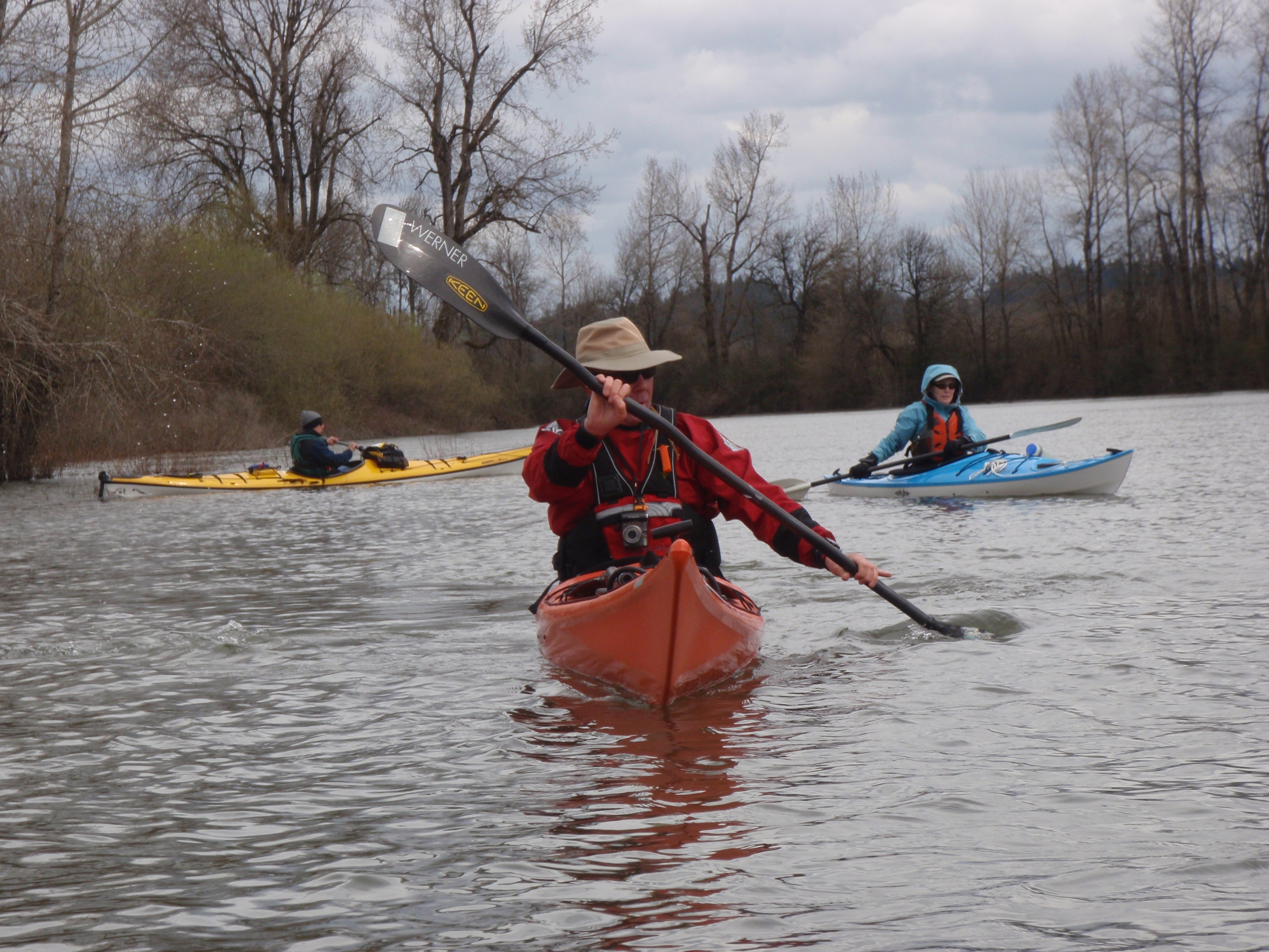 Although winter is tenaciously hanging on in this La Nina year and I love snow sports, I’ve begun a seasonal desire to turn to water sports. My 21 times skiing this season has had me ignoring my meetup group. So since I had some free time April 3rd so I scheduled a paddle with my PaddeNW Meetup in the Ridgefield National Wildlife Refuge.