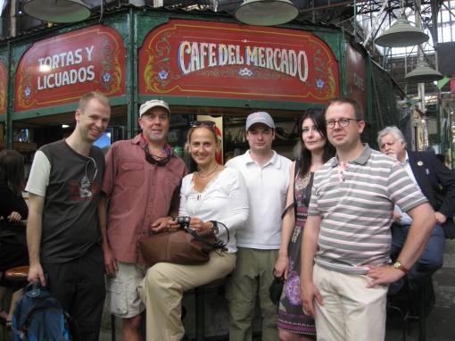 Ivo, Rod, Eray, Elwyn, Angelique and Christof enjoying a break from the San Telmo market