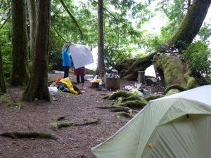 Though full the campground’s campers are gregarious but mellow. Nobody has trouble sleeping! Morning finds me fixing traditional bacon, eggs, and home made hash browns. All fueled up we head up to the trailhead at Jack Lake.