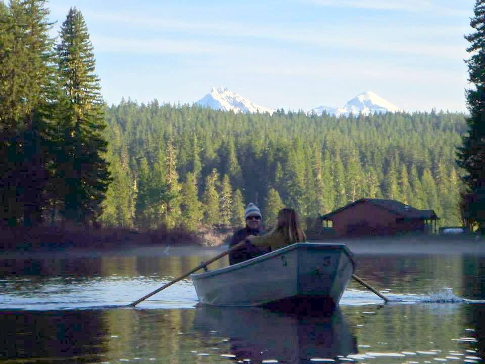 Today, Laura and I arrived first. Our group had booked two sides of a tandem cabin. Each side has two bedrooms with double beds and a double futon in the living room. A propane-fueled pot bellied stove heats each side, and there are kitchens on each side. Cost? $99 for two nights per side. Heck if you have some friends along it’s super cheap! Other facts to know…A hiking trail runs around the lake, and there are hiking options nearby along the McKenzie River. Hoodoo Ski Resort is 30 minutes distant. And there’s cross-country skiing at Ray Benson Snow Park. For mountain bikers the nationally famous McKenzie River trail awaits.