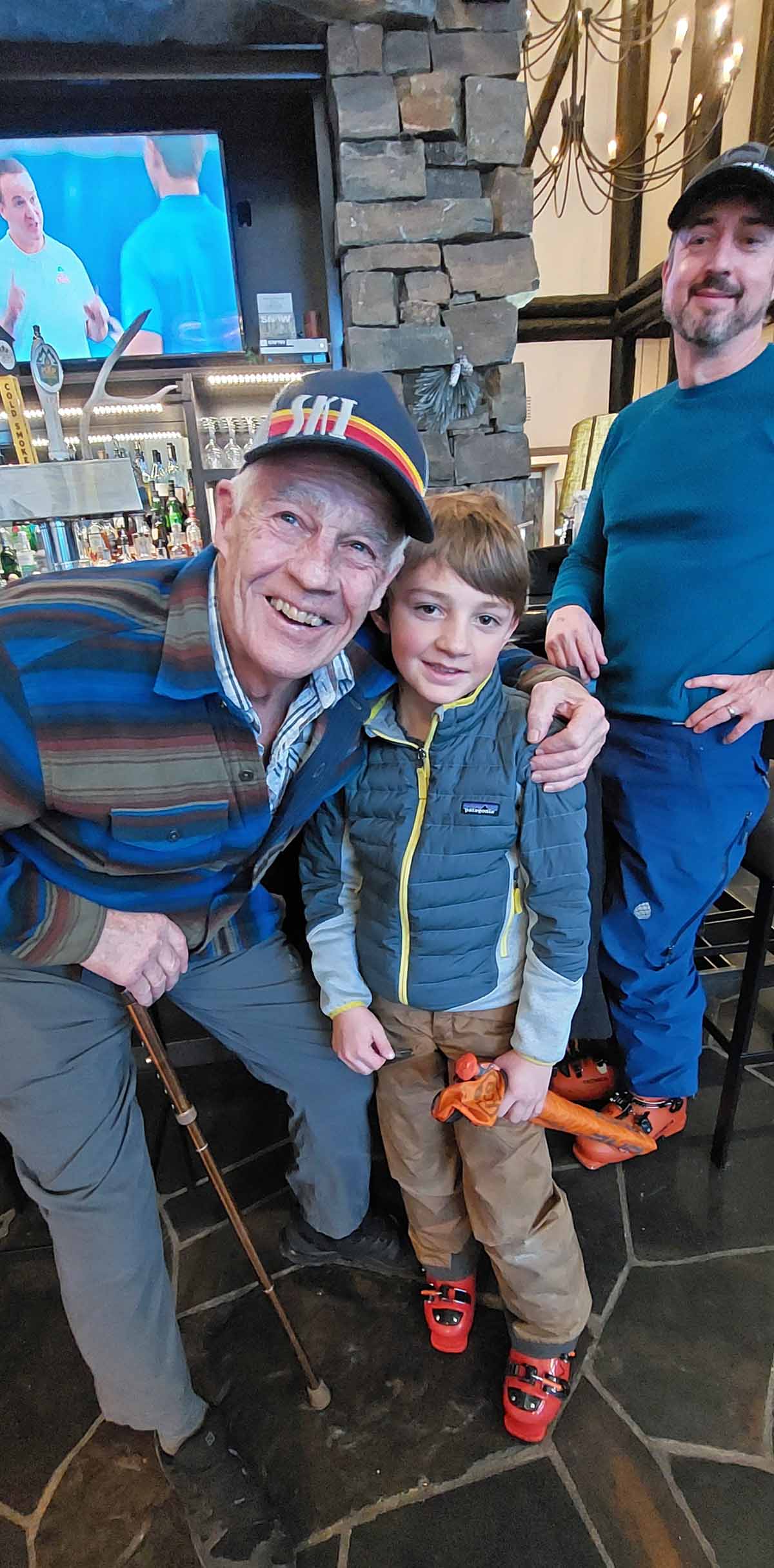 Bob gave us directions to his place, which was at Moonlight Basin. We had no idea what to expect. We drove up, and valets took care of our car and our skis! They delivered the skis to the other side of the building where the trail was. On our side, we were greeted to a fire pit. Inside, welcoming staff, a grand fireplace, bar, restaurant, and comfortable chairs to put our ski boots on. Later, Bob treated us to lunch and drinks! This went on for three days, right on through the NFL playoffs! Wow!
