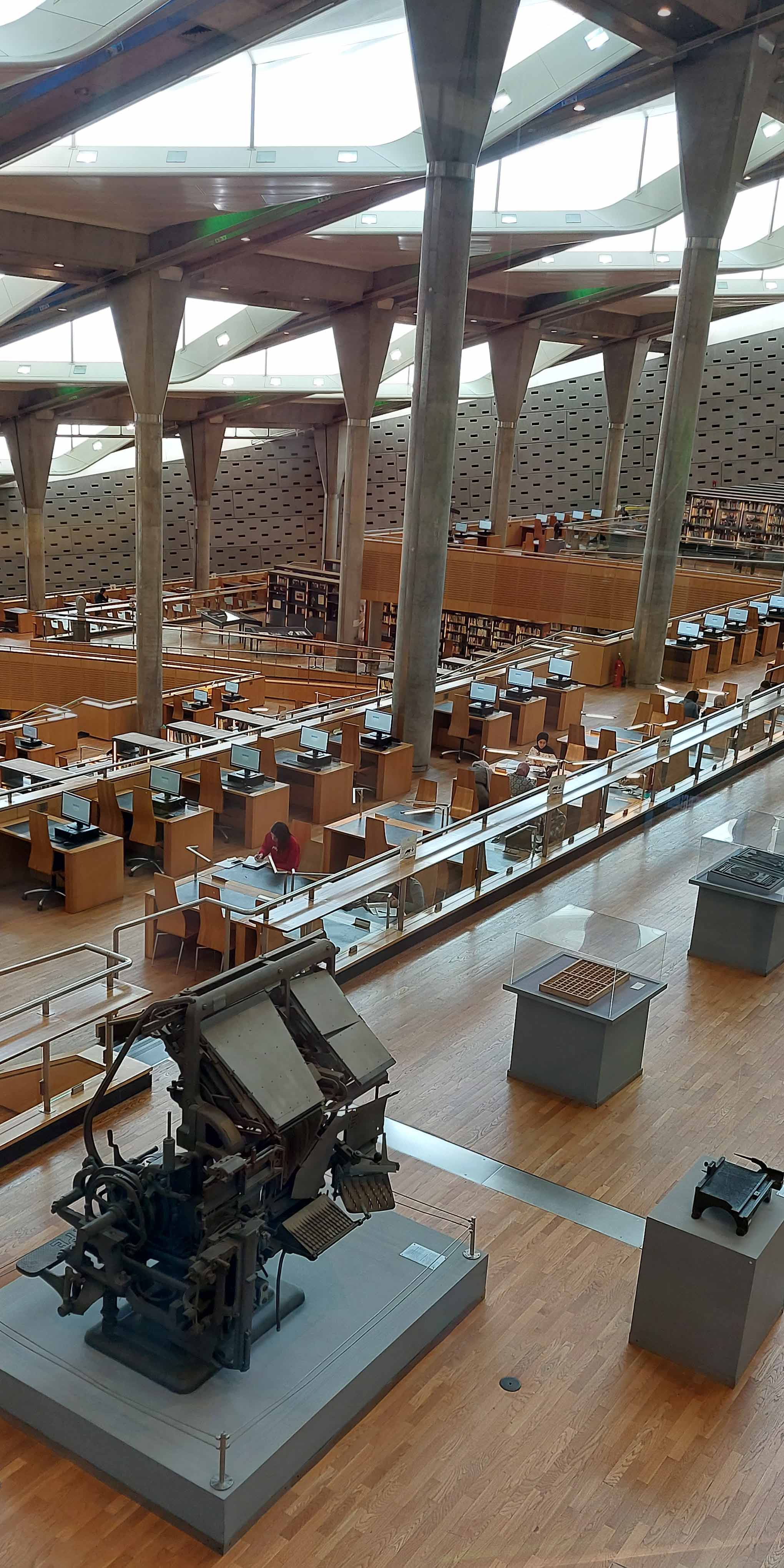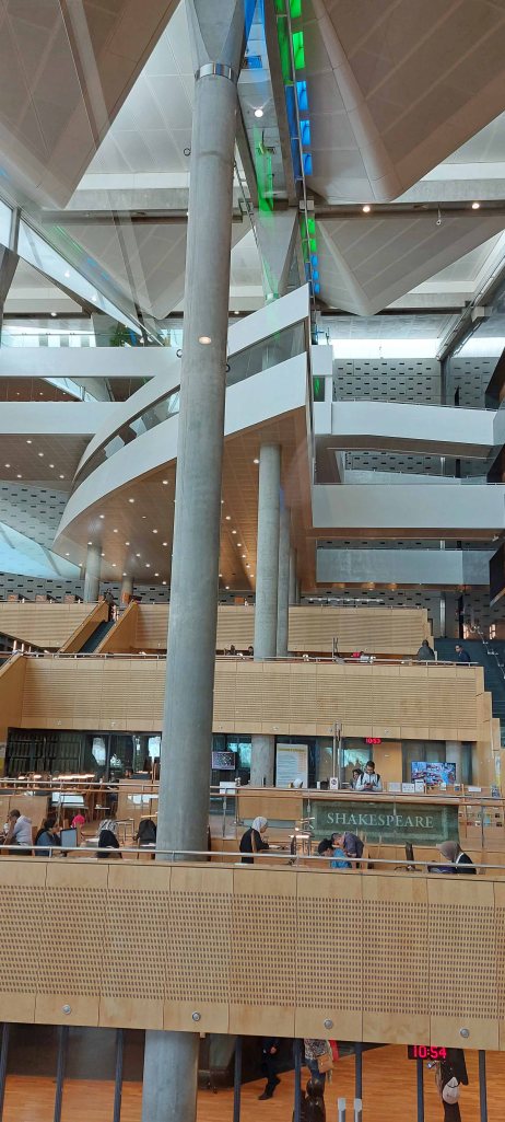 The Citadel of Quaitbay is a defensive fortress. It was completed in 1479. It guarded the harbor for centuries. It stands in good condition. Visitors can walk the grounds, and take in the sea breeze and views of Alexandria Harbor. In ancient times, the Alexandria Lighthouse stood here. It was one of seven wonders of the ancient world. Next, we toured the modern edition of the Alexandria Library. In ancient times, the library housed a collection of most of the works and history of the human race. The collection varied from artistic to scientific. The city was considered a scholarly capital. Over centuries it fell into decline – records show the structure came down in the year 275 AD. Today the rebuilt library is impressive and we spent a few hours there. And had a lunch break nearby.