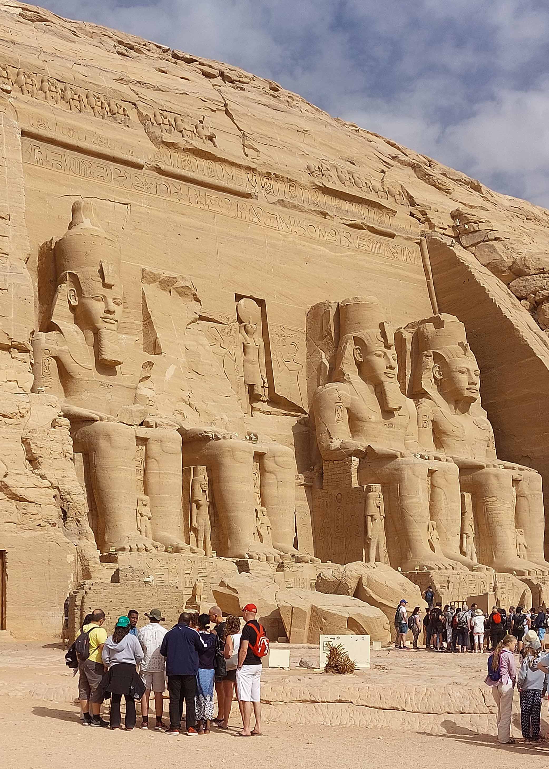 Abu Simbel stands tall as one of the ancient world’s most amazing achievements. Carved into a mountain, for thousands of years it has stood as an emphatic notification to all sailing north on the Nile that this is the border of Egypt, a powerful kingdom. And, during the 66-year rule of Ramses II, 4 giant statues of him informed all comers that this was his country.