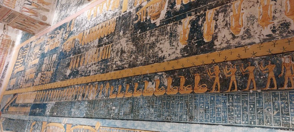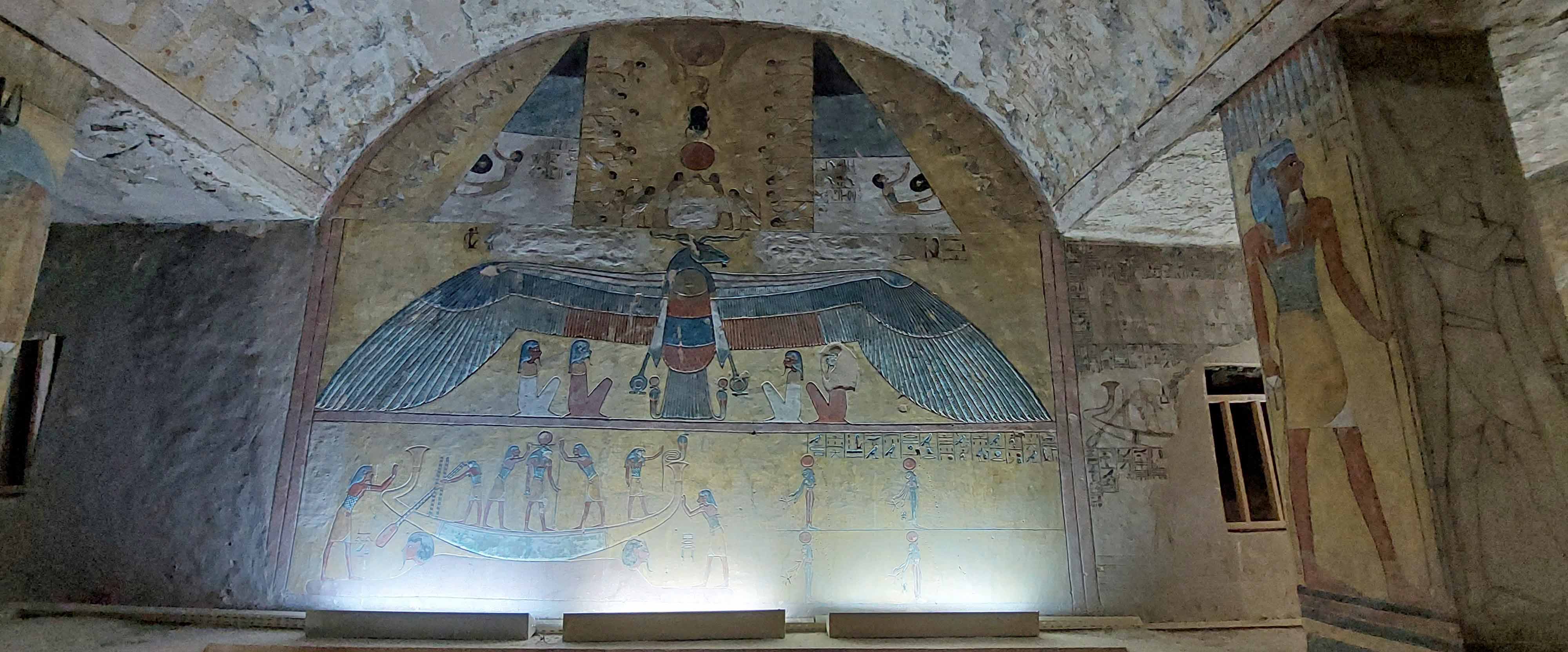 The tombs are intended to help the soul of the pharaoh complete the journey from this life to the next. The walls and ceilings are completely filled with memories of his life, and after life myths and traditions all ancient Egyptians knew as essential to successfully make the transition to the next life.