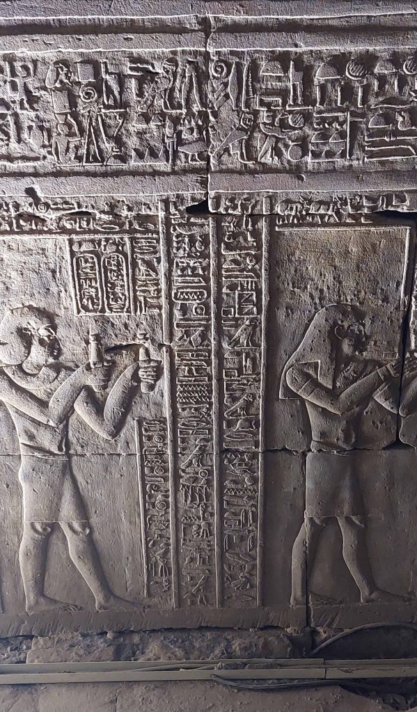 Part of this important story is that the God of violence and chaos, Set, and Horus had a fight. Horus lost eyes. His mother Isis, Goddess of motherhood and healing, searched with Nephthys, her sister, for the the eyes and found them. Isis healed Horus’ eyes, and ever since the eye has been a sign of healing. Ancient Egyptians believed this battle happened exactly where the Temple at Edfu was constructed. All sorts of unmentionable acts occurred in this lengthy story.