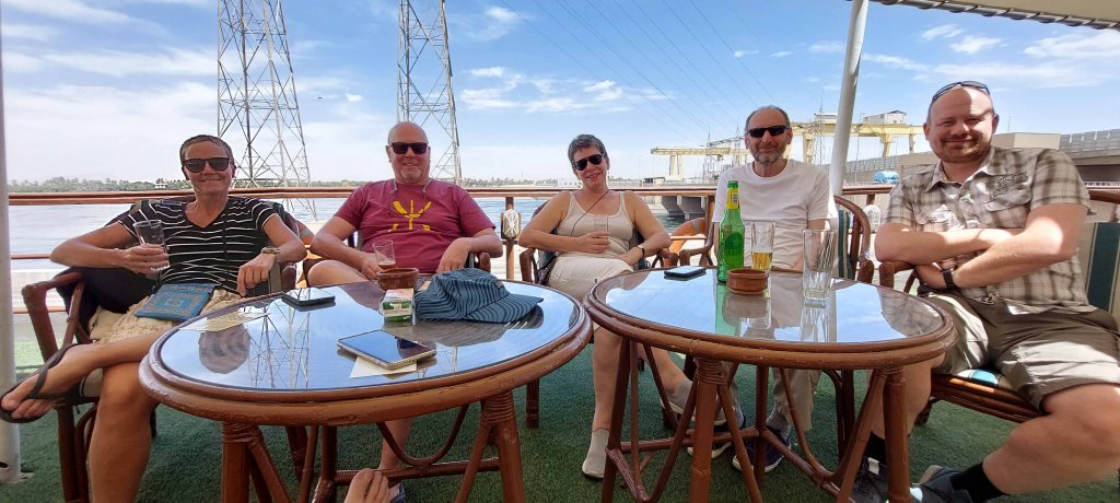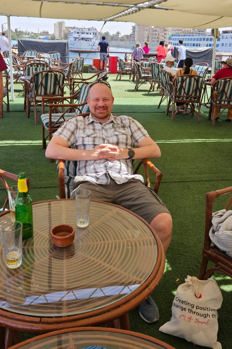 For me, the best place to be was up on the covered roof deck. There, we all found ourselves lounging at the cocktail tables, enjoying the cool Nile breezes, watching life unfold on shore.