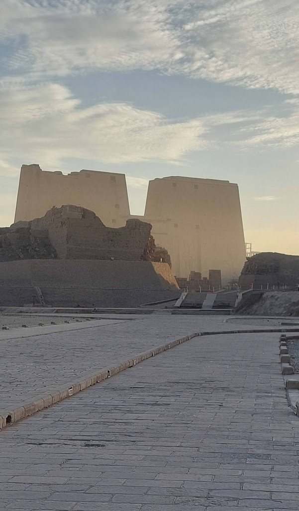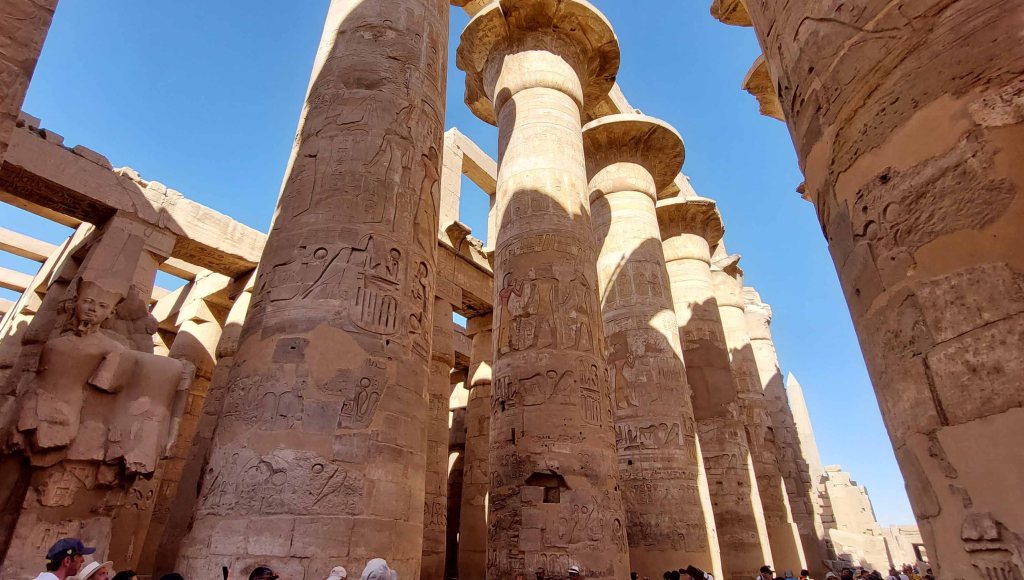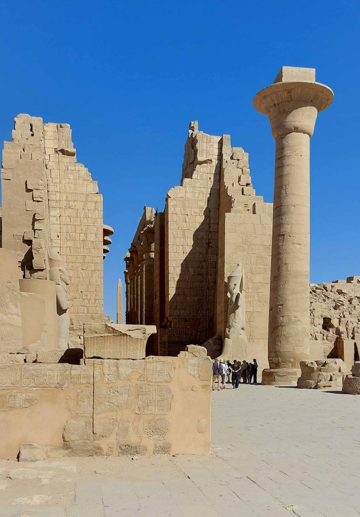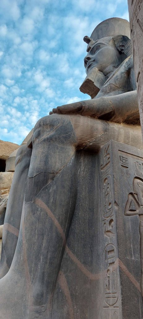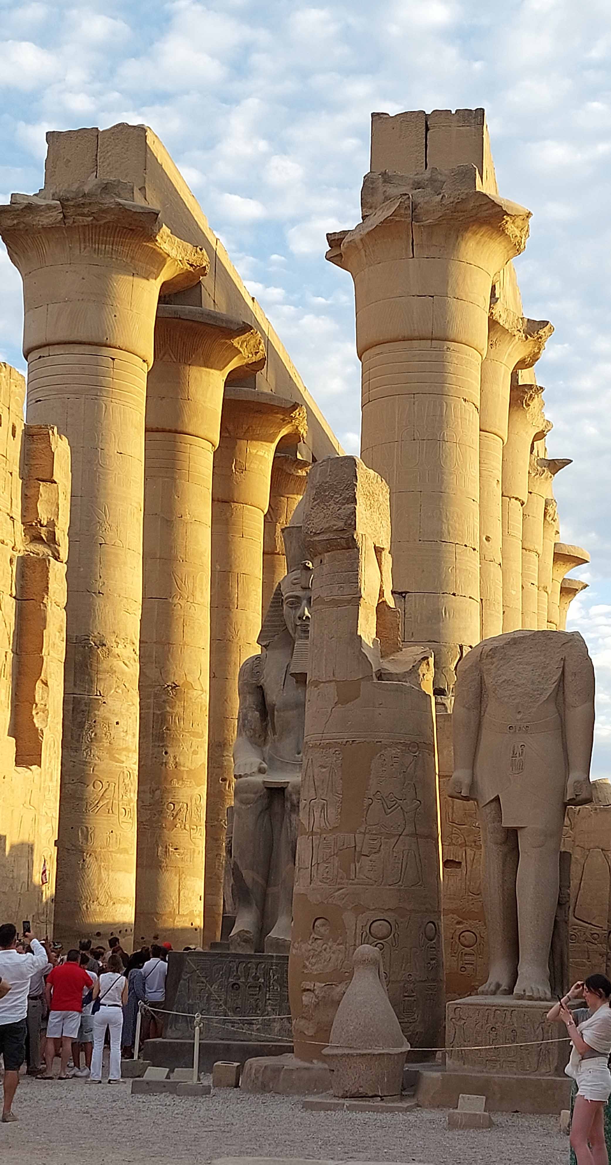 The blue Saharan sky, puffy clouds, the amber glow of the sunset. The columns. And these statues of Ramses II were, well. You decide!