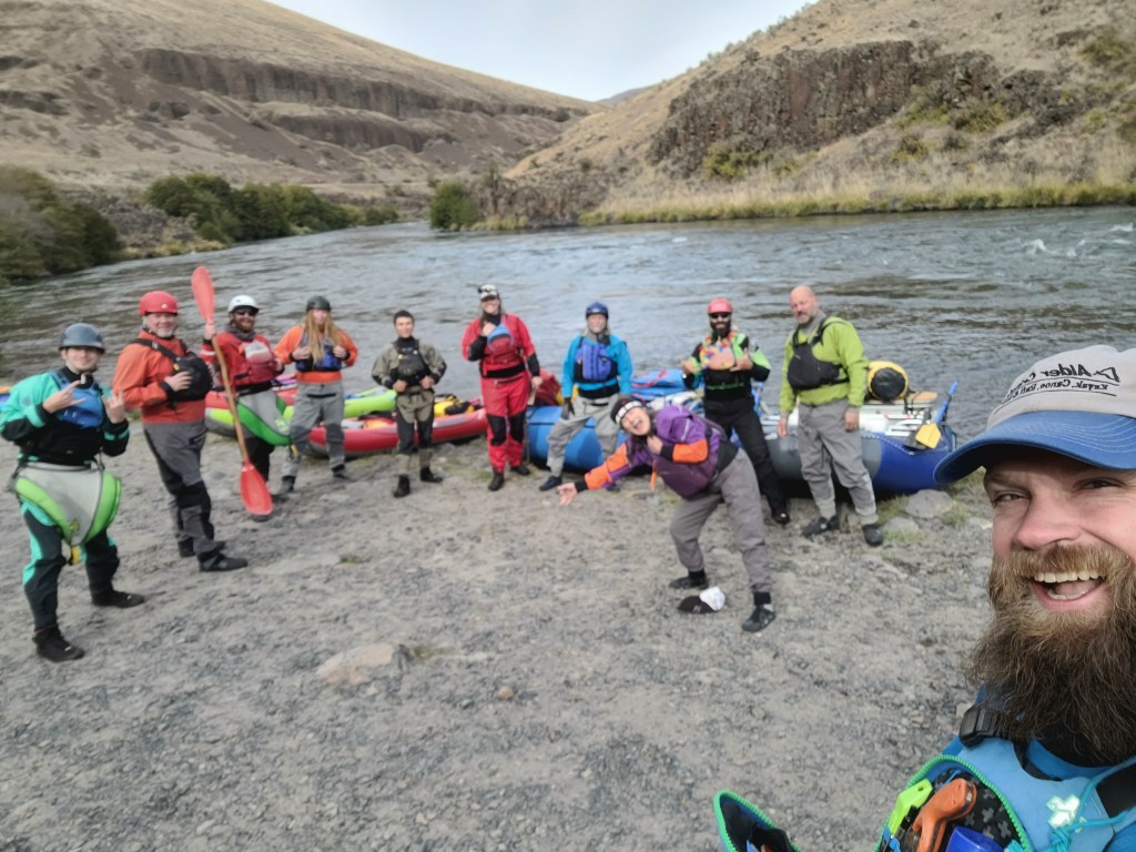 The Covid years of 2020 and 2021 have been the most challenging – and rewarding – to all of us Alder Creek Kayak and Canoe. Each of us has worked our hearts out – practically reinventing the business in the process – slaloming through countless challenges posed by mask mandates, reinvention of rental and instruction procedures, chronic product uncertainties, and skyrocketing pandemic-driven consumer demand. We’ve succeeded. The business is stronger than ever, and we still command exceptionally high customer satisfaction. Congratulations everybody! So in early October, our bosses Dave and Suzi, as a celebration and thank-you, closed the store for two days and took the staff on a two-day trip on 42.4 miles of the Lower Deschutes River.