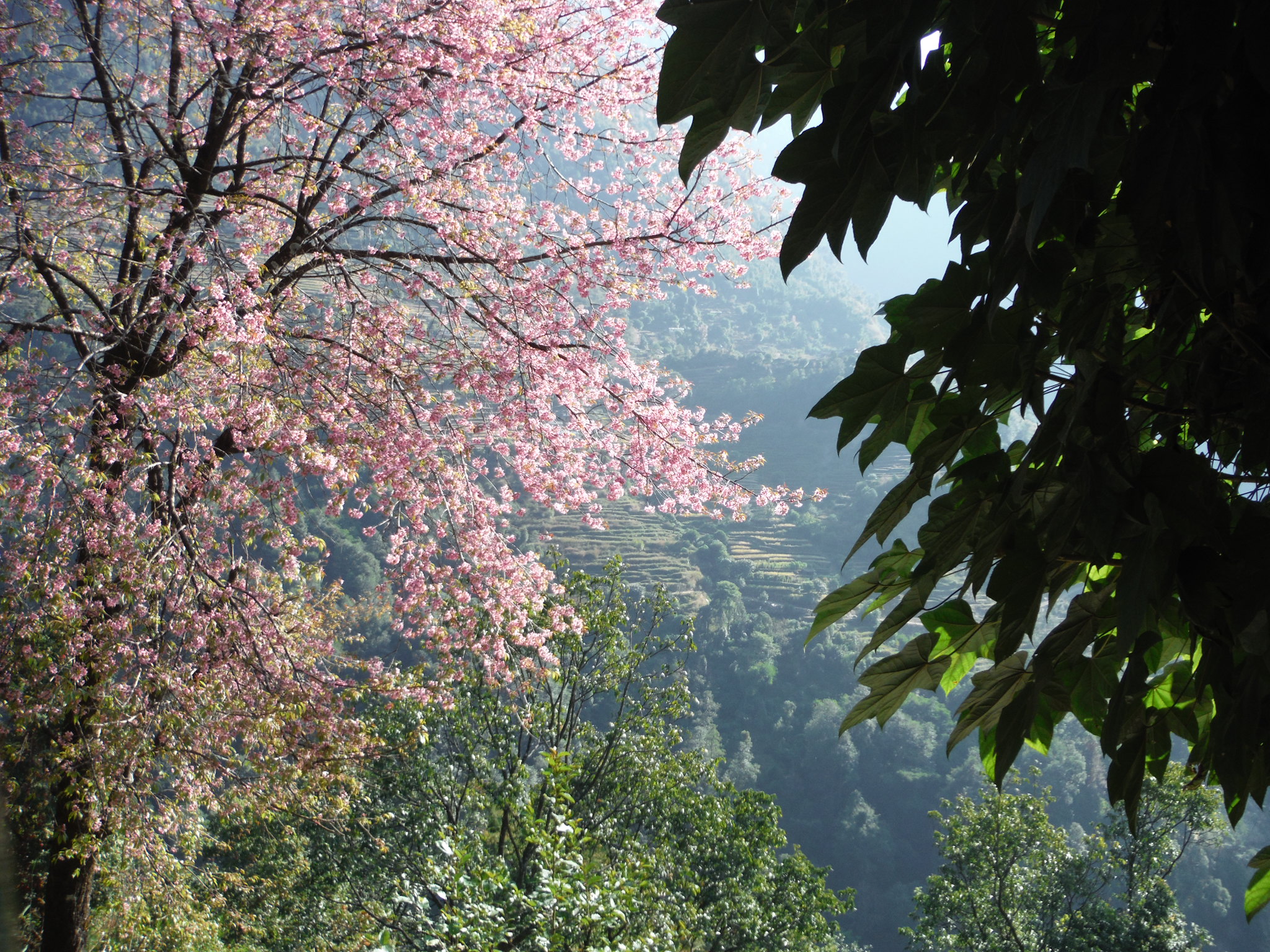 Look beyond the tree. Can you see the steep hillside across? We came from there!