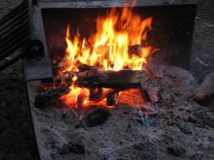 I foraged for wood left behind by other campers and the effort paid off big time. That, plus setting up my hammock, and the wonderful weather made for a nice time. This treasure trove of wood made for a blazing inferno!