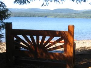 It was a glorious day! Our group split up. Some, led by April, set out to kayak to a trailhead and climb some 2,000 feet to an abandoned fire lookout. From there you can see the lake plus all of the Central Cascades Region of Oregon including Diamond Peak, the Three Sisters Wilderness, and Bend.