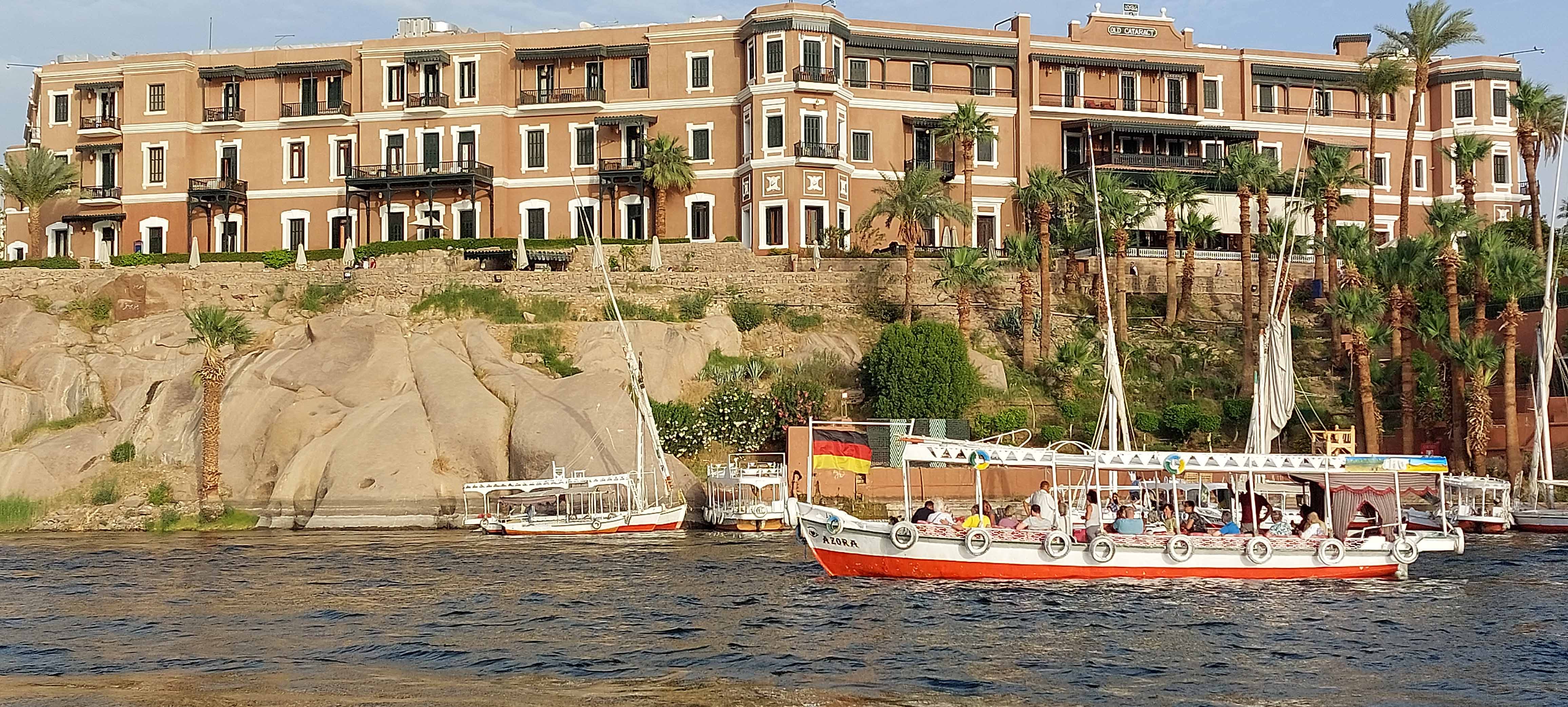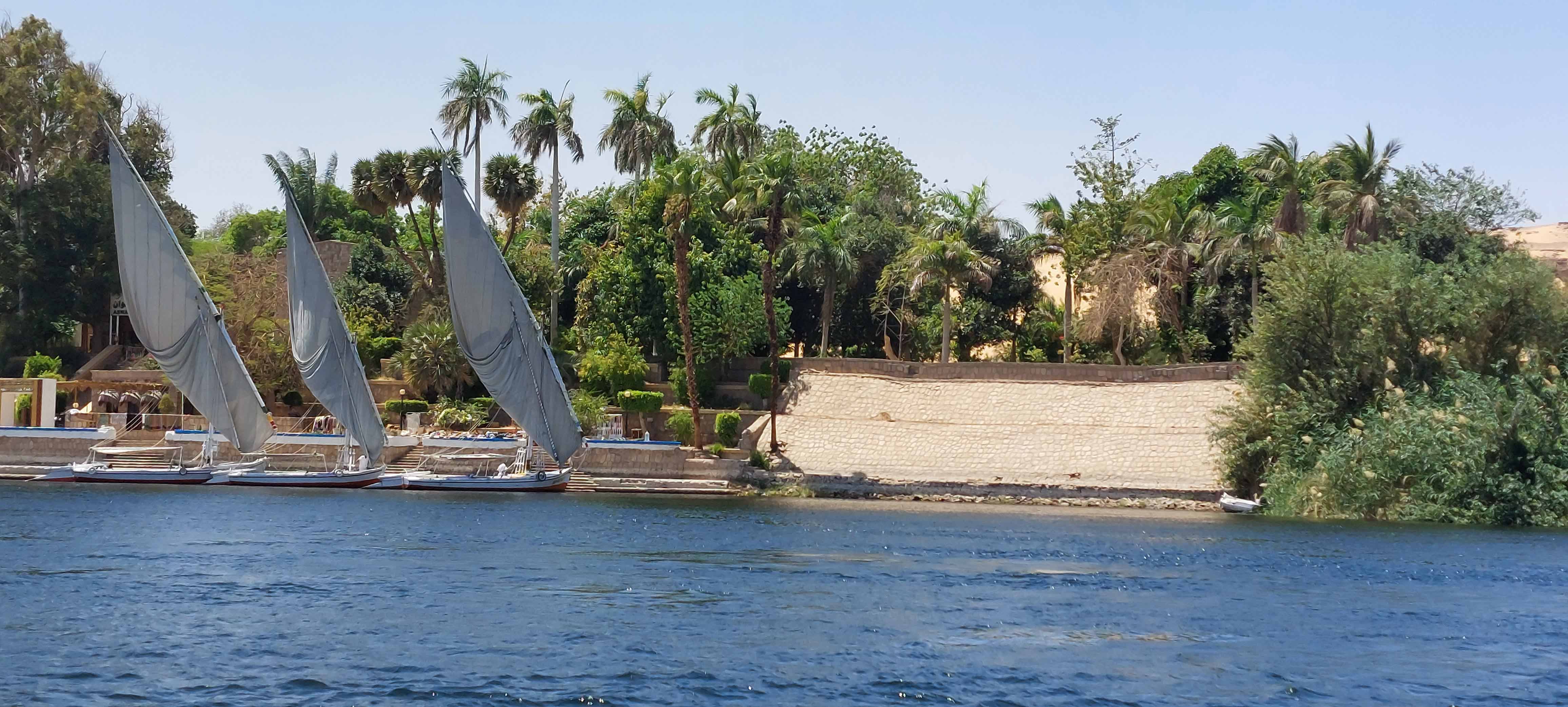 Up on deck, the views were ever changing. Sometimes looking down upon the neighboring boat, which might have a sphinx on its bow. Or, looking past the docks to a Coptic Christian cathedral.