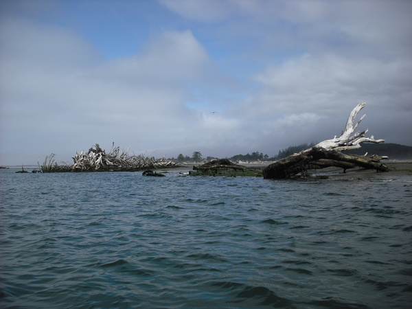The bay is full of huge driftwood. Whole trees are lodged here. Some are old growth for sure. Day after day, year after year, the tide ebbs and floods, turning them into driftwood.