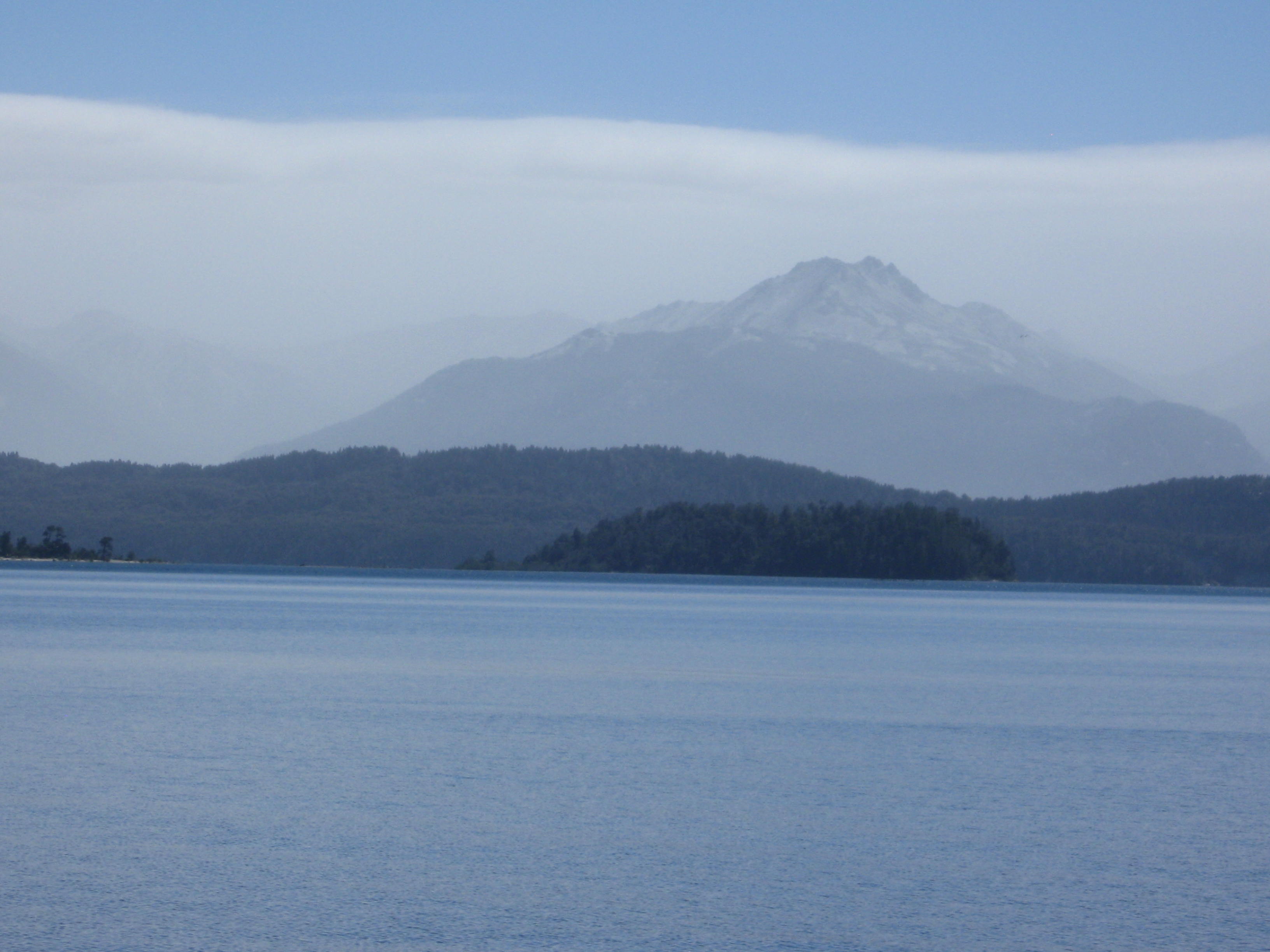As we head out, we can see peaks everywhere. On our side of the lake it’s a perfect day. Very little wind, calm water, beautiful sky. Still, we can see the ash cloud and we wonder about what’s going on over on the Chilean side.