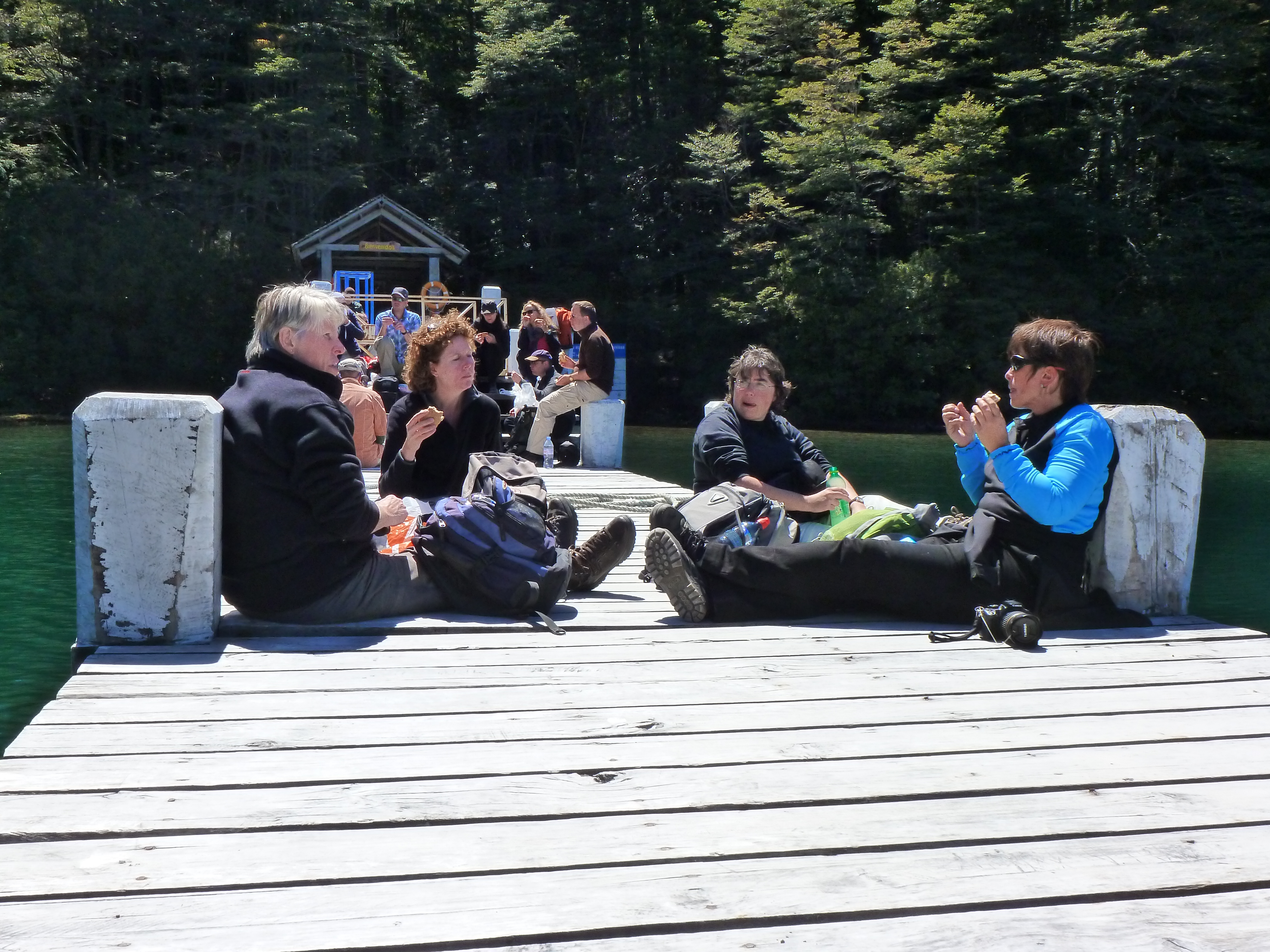Our ferry comes to a small bay surrounded by snowy peaks. We stop at a dock to disembark, have lunch and then do a four hour hike up one of the cascading rivers. It’s going to be fantastic. It’s such a lovely temperature!