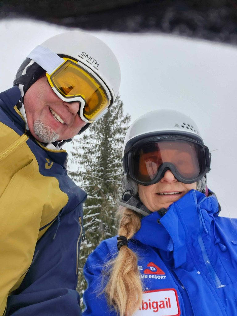 RED Mountain offers complementary guided skiing twice a day. You can choose skill levels from novice to advanced/expert. I chose intermediate, with my knee still recovering. It turned out that I had a one-on-one guided experience with Abigail! She showed me all the lifts, and we did groomed blues and also a tree run with tight turns.